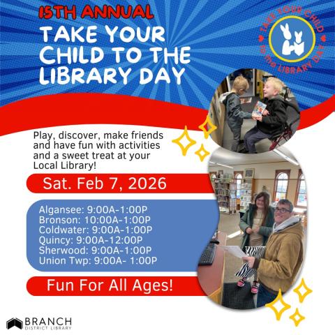 Come out for the 15th Annual Take Your Child to the Library Day held on Saturday, February 7th!