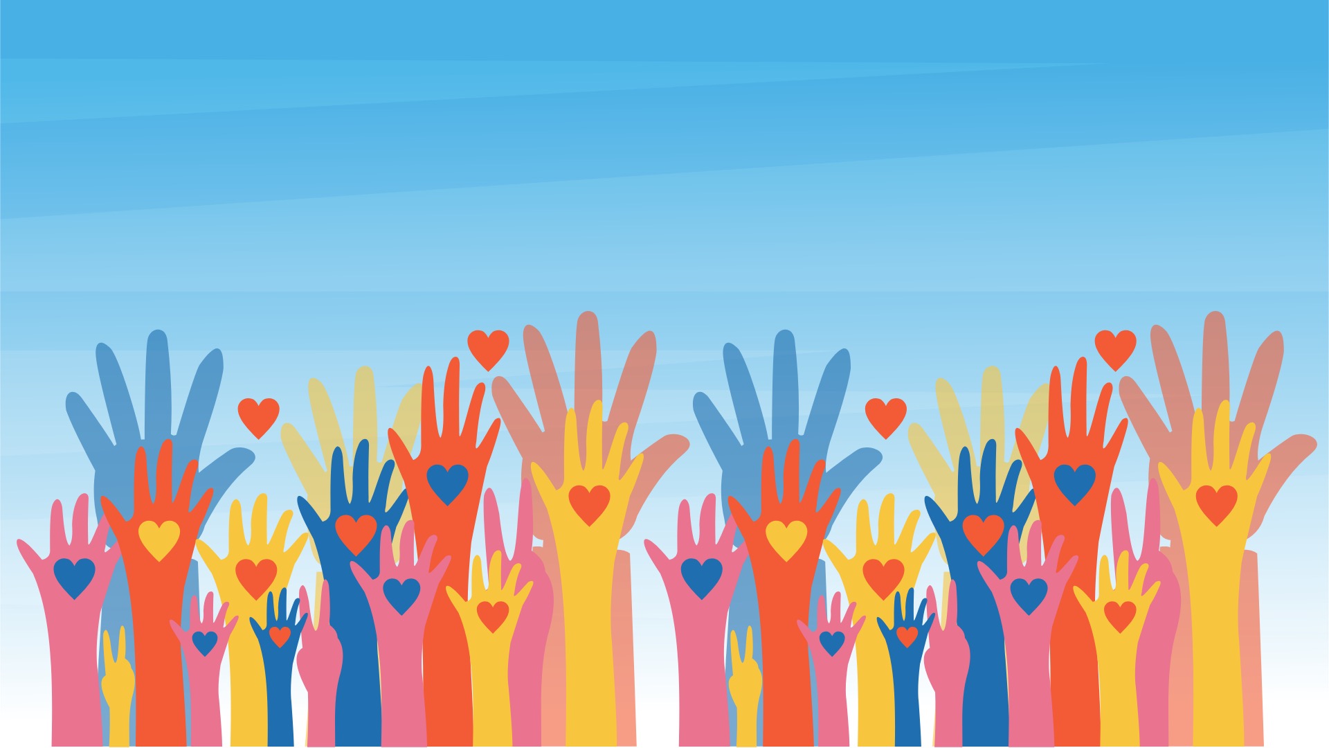 Image showing a group of raised hands.