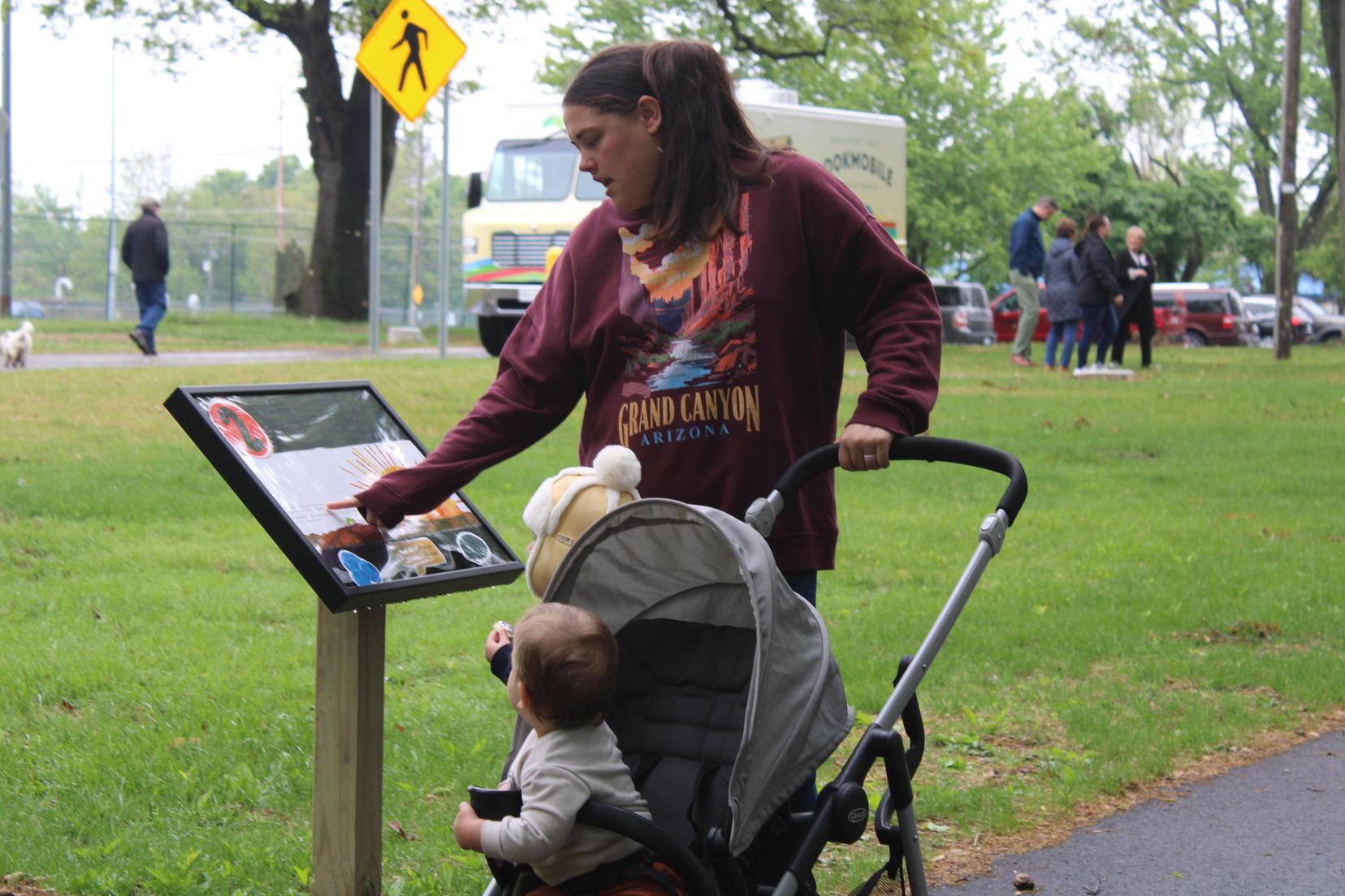 Pages from a children’s picture book are displayed along a trail or sidewalk for families to read as they walk. Simple activity ideas accompany the book pages promoting movement, literacy, and discussion about the outdoors. The project encourages early literacy, outdoor activity, nature awareness, and spending time with family.